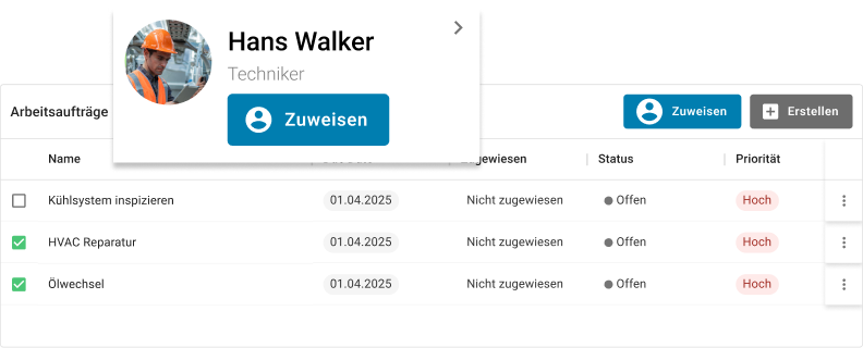 Sie können Aufträge jetzt direkt aus der Liste heraus zuweisen, ganz ohne Wechsel in das Gantt-Diagramm. Ideal für schnelle Zuordnungen oder die Tagesplanung.